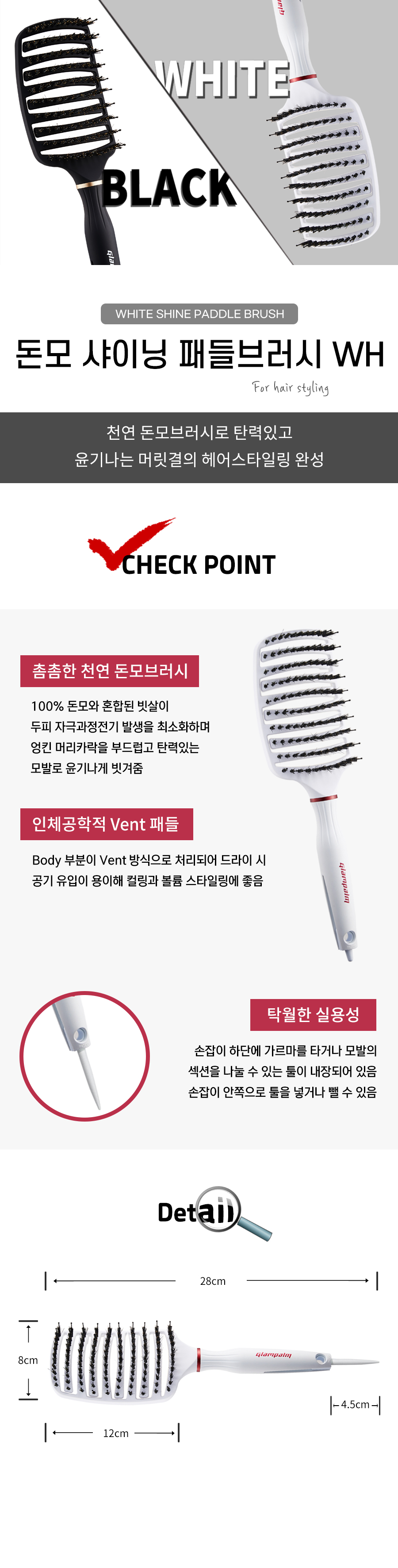 | 화이트 돈모 샤이닝 패들 브러시 |