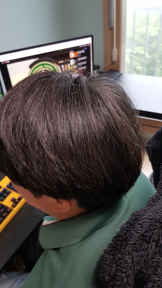 ?악어집게가 보이지않을정도의 어마무시한 머리숱을 자랑하지만 좌절하지않습니다.