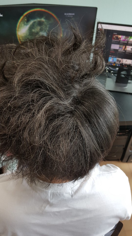 심지어 숱도 엄청많은, 되게많은 머리입니다.